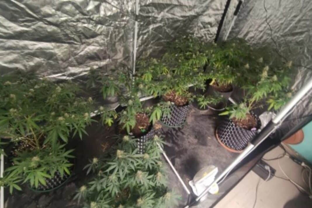 - 9 δενδρύλλια κάνναβης σε γλάστρες, σε ειδικά διαμορφωμένο δωμάτιο με πλήρη εξοπλισμό (λάμπες LED, θερμόμετρα, υγρόμετρα),