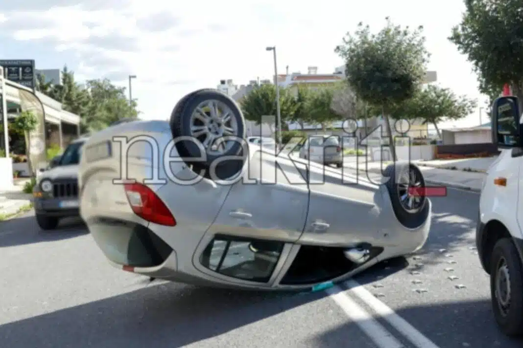 Τροχαίο στο Ηράκλειο: Αυτοκίνητο «τούμπαρε» στη μέση του δρόμου – (βίντεο)
