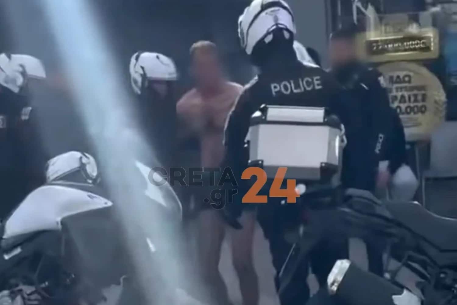 Ηράκλειο: Εκτός ελέγχου ημίγυμνος άνδρας – Προκάλεσε ζημιές σε σούπερ μάρκετ, βιτρίνες και αυτοκίνητα (εικόνες)