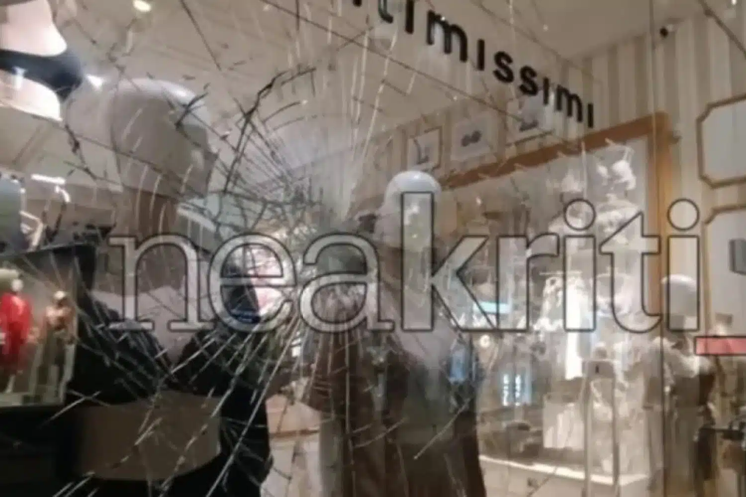 Σε βίντεο που εξασφάλισε το neakriti.gr, φαίνεται ομάδα ατόμων να προκαλεί καταστροφές με πέτρες και βαριά αντικείμενα, σπάζοντας βιτρίνες καταστημάτων στο κέντρο της πόλης.