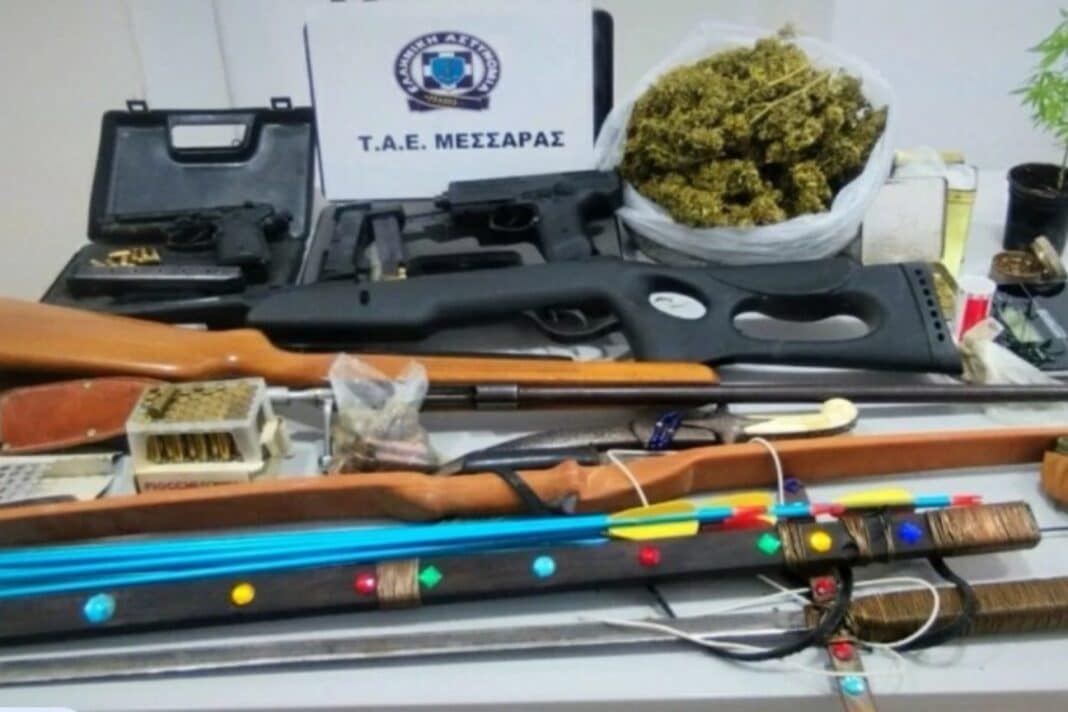 «Συνελήφθη χθες (05.06.2025) το πρωί σε περιοχή του Δήμου Φαιστού από αστυνομικούς του Τμήματος Αστυνομικών Επιχειρήσεων Μεσαράς, 61χρονος ημεδαπός, κατηγορούμενος για παραβάσεις νομοθεσίας περί όπλων και ναρκωτικών ουσιών.