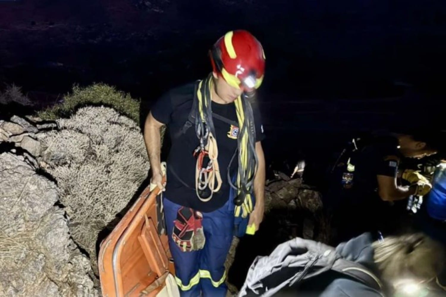 Οι διασώστες περίμεναν το πρώτο φως της ημέρας ώστε να καταστεί εφικτή η πρόσδεση και η μεταφορά του τραυματία από το φαράγγι, όπως αναφέρει το neakriti.