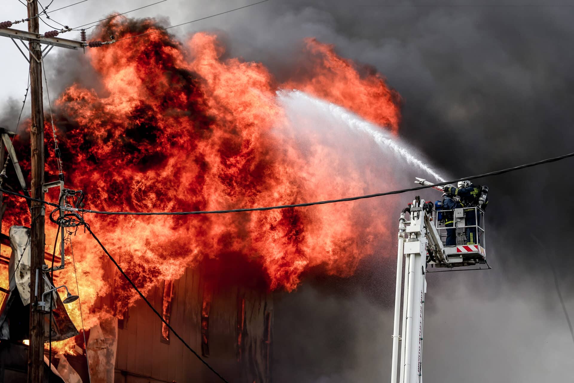 Η επιχείρηση συνεχίζεται με αμείωτη ένταση, υπό το φόβο και τον κίνδυνο επέκτασης της πυρκαγιάς σε γειτονικές επιχειρήσεις.