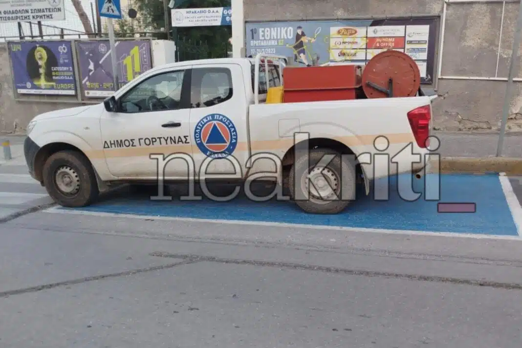 Οδηγός υπηρεσιακού αυτοκινήτου του Δήμου Γόρτυνας, που υπάγεται στο Ηράκλειο, πάρκαρε σε θέση ΑμεΑ το μεσημέρι της Τετάρτης (12/3).