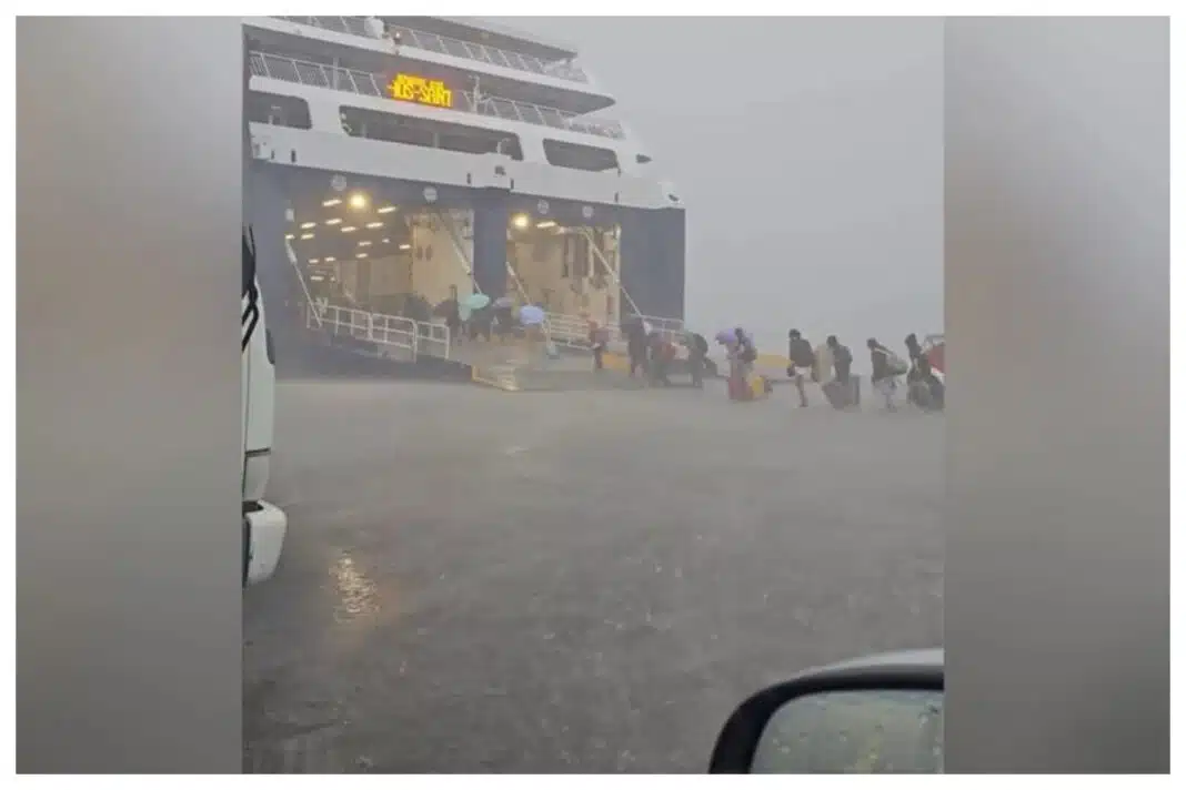 Η βροχή κράτησε για 15 λεπτά και είχε πολύ μεγάλη ένταση, με βίντεο στο tiktok κατά την επιβίβαση επιβατών σε πλοίο, να καταγράφει την σφοδρότητα της βροχόπτωσης.