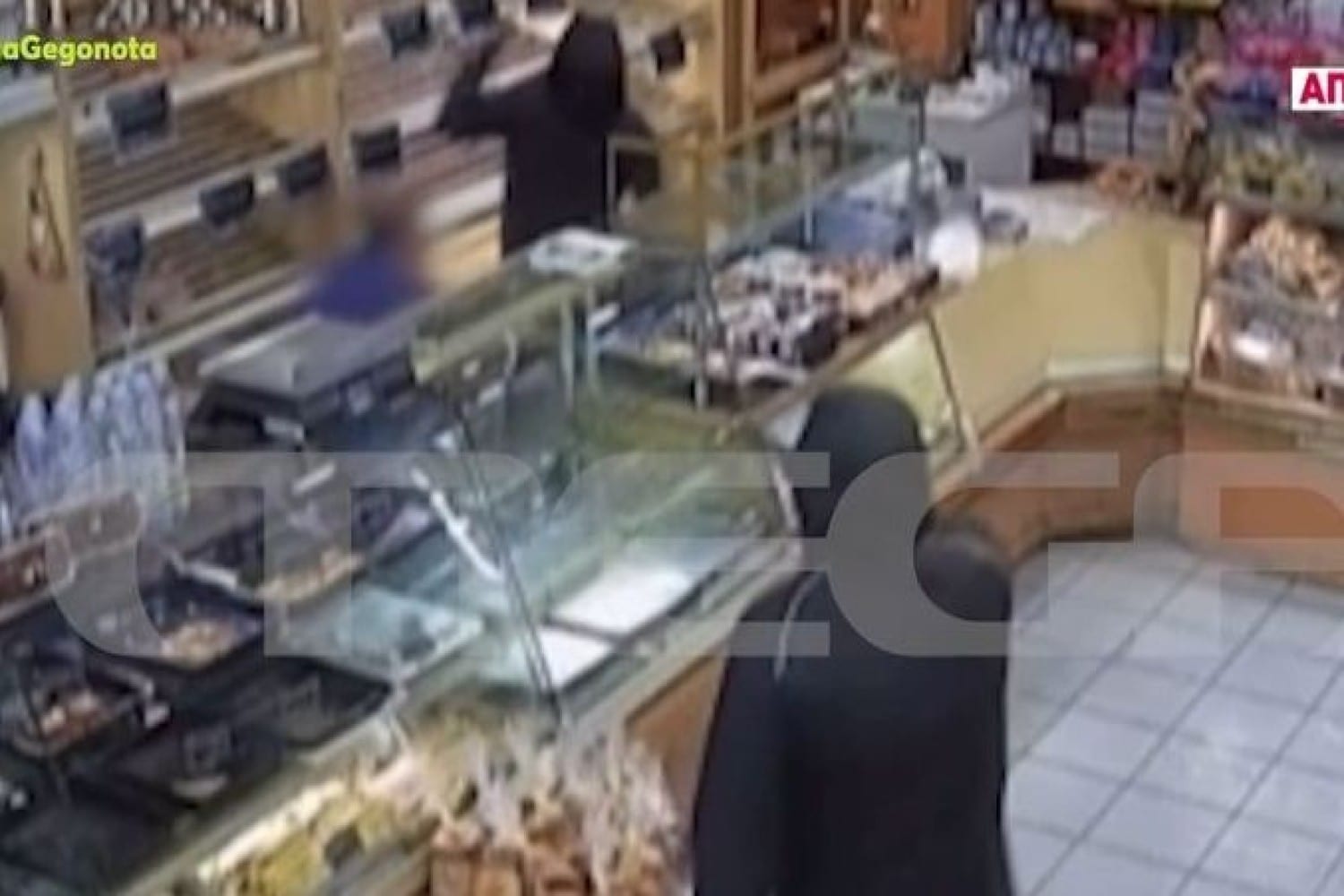 Ο μαυροντυμένος δράστης σπρώχνει τον 67χρονο και στη συνέχεια πετάει την ταμειακή μηχανή στο πάτωμα, στην προσπάθειά του να την ανοίξει.