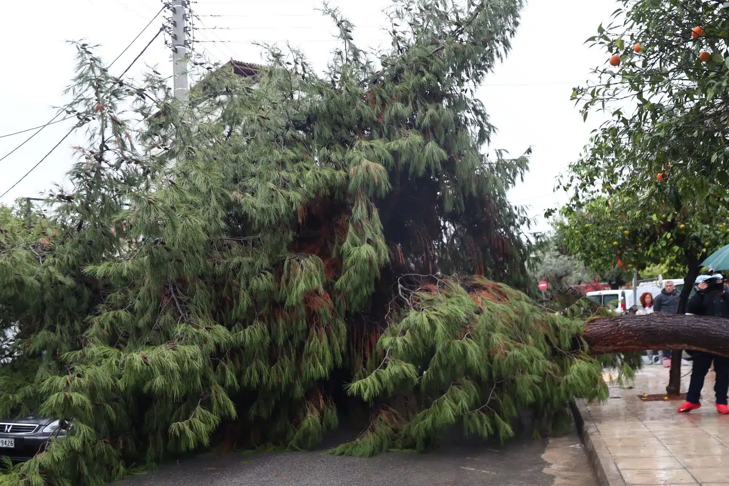 Το τζάμι του οχήματος καταστράφηκε ενώ η πυροσβεστική κλήθηκε άμεσα για την κοπή του δέντρου.