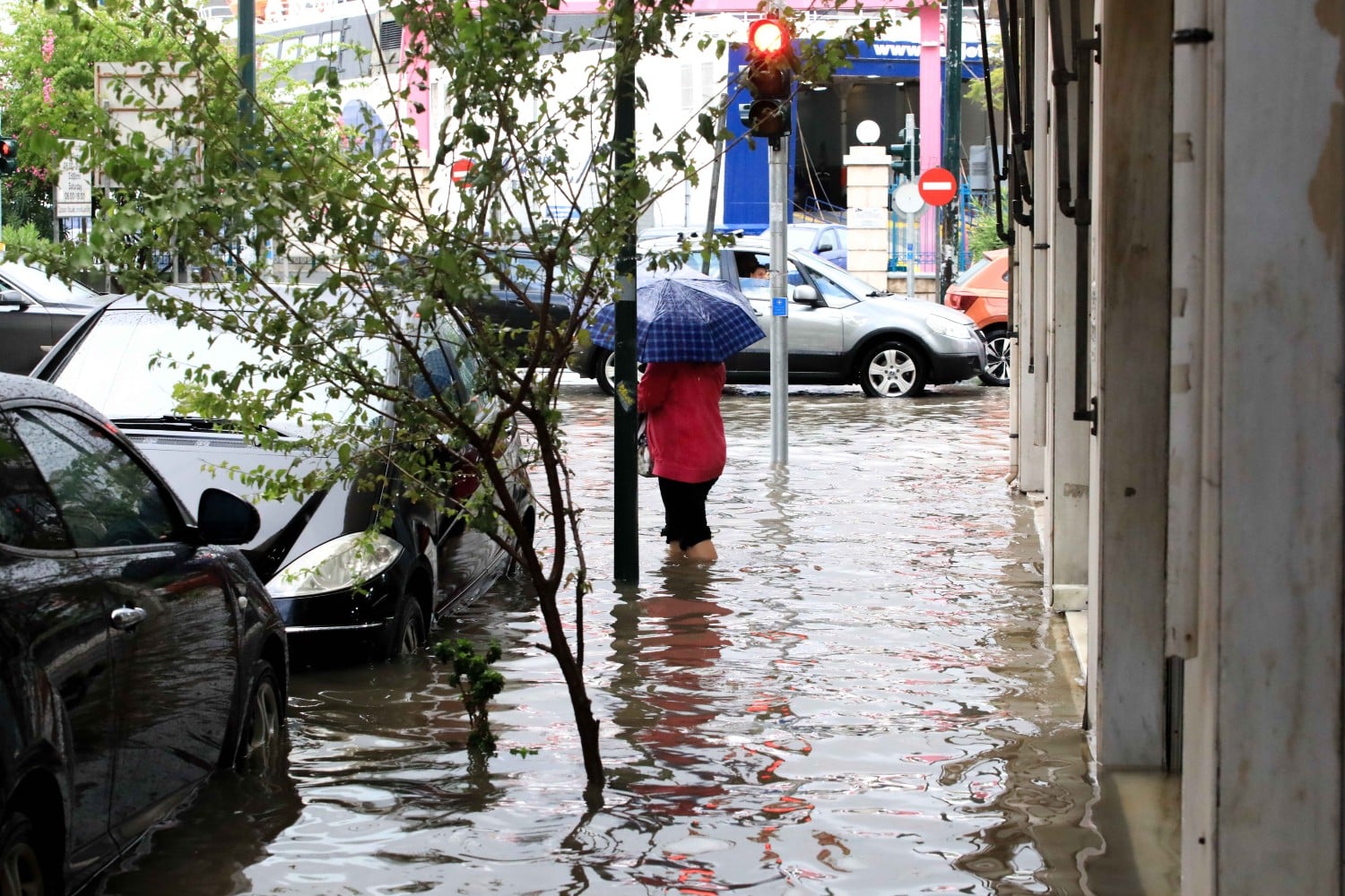Μέσα σε λίγα λεπτά της ώρας, όλοι οι δρόμοι πλημμύρισαν κι έγιναν αδιάβατοι.