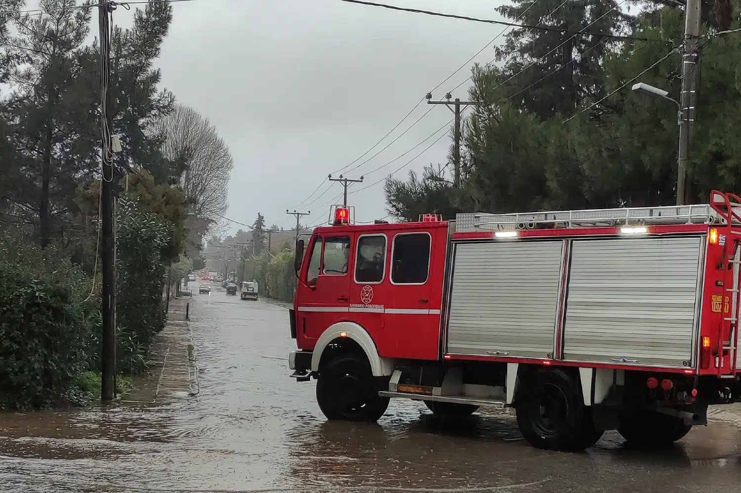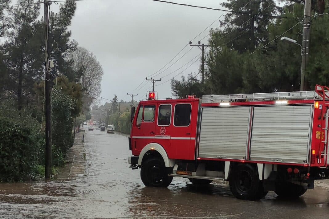 Μια οικογένεια τεσσάρων ατόμων απεγκλωβίστηκε από σπίτι επί της οδού Αγίας Ειρήνης στο ρέμα της Ρεβιθιάς, στον Κάλαμο.