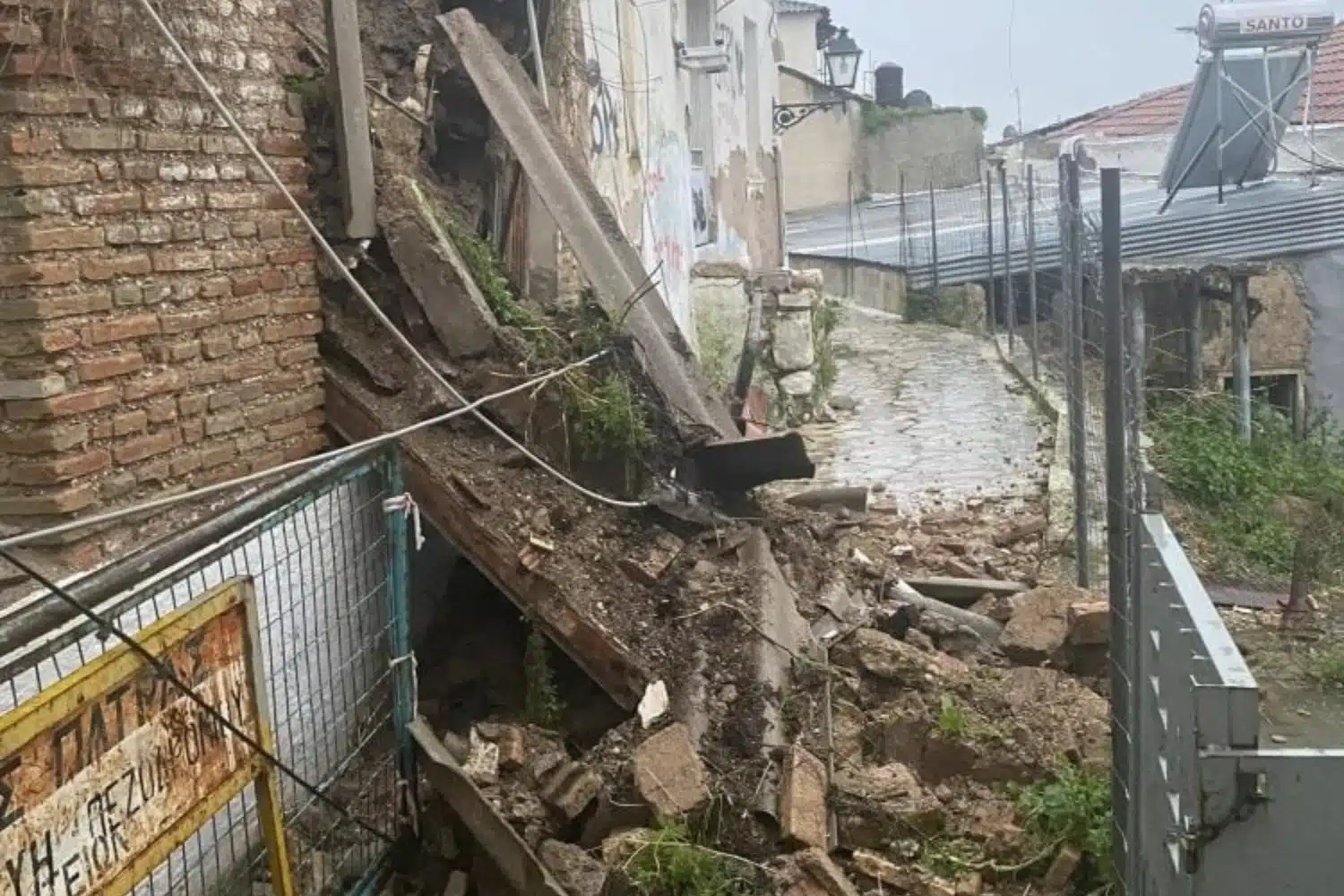 Πρόκειται για ένα εγκαταλειμμένο ακίνητο το οποίο με την πτώση παρέσυρε καλώδια ηλεκτροδότησης και τηλεπικοινωνίας.