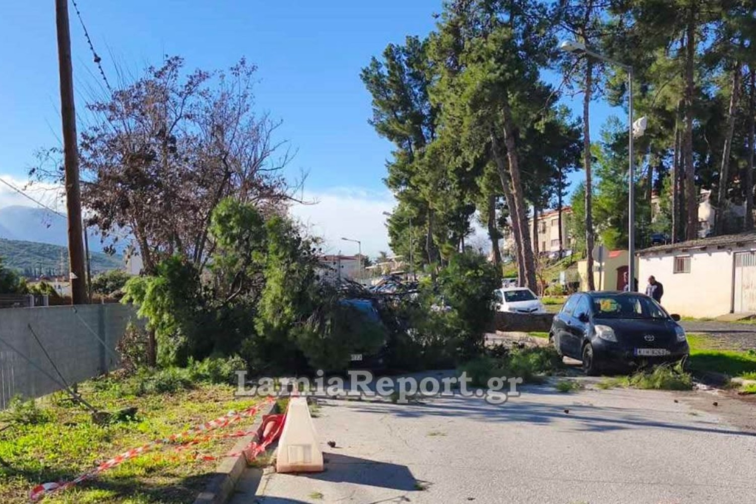 Ένα μεγάλο πεύκο στον περιβάλλοντα χώρο του Νοσοκομείου Λαμίας κατέπεσε πάνω σε σταθμευμένα οχήματα, προκαλώντας μόνο υλικές ζημιές. Αντίστοιχο συμβάν σημειώθηκε και στον δρόμο Λαμίας–Καρπενησίου, στη διασταύρωση προς Αμούρι, όπου επενέβη το κλιμάκιο Αργυροχωρίου.