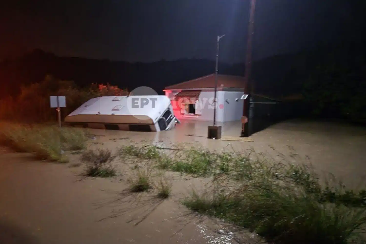 Σύμφωνα με πληροφορίες, δύο Γερμανοί τουρίστες κινδύνευσαν όταν το κατάλυμά τους, το όχημά τους και ένα τροχόσπιτο κατακλύστηκαν από τα νερά.