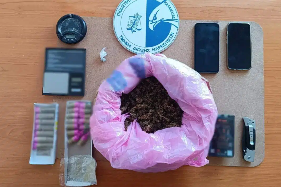 Συνελήφθησαν χθες (16/10) πρωινές ώρες, σε περιοχή του δήμου Τριφυλίας, στην Καλαμάτα, από αστυνομικούς του Τμήματος Δίωξης Ναρκωτικών της Υποδιεύθυνσης Δίωξης και Εξιχνίασης Εγκλημάτων Καλαμάτας, ένας 21χρονος ημεδαπός και ένας 24χρονος αλλοδαπός, σε βάρος των οποίων σχηματίστηκε δικογραφία για συμμετοχή σε εγκληματική ομάδα, ναρκωτικά και κατά περίπτωση αδικήματα παράβασης των νομοθεσιών περί όπλων και περί κροτίδων, φωτοβολιδών και παιδικών αθυρμάτων, η οποία περιλαμβάνει έναν ακόμα άγνωστο συνεργό τους.
