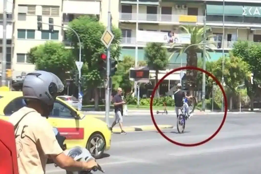 Καλλιθέα: Ποδηλάτης παραβίασε κόκκινο φανάρι με τη μία ρόδα στον αέρα (βίντεο)