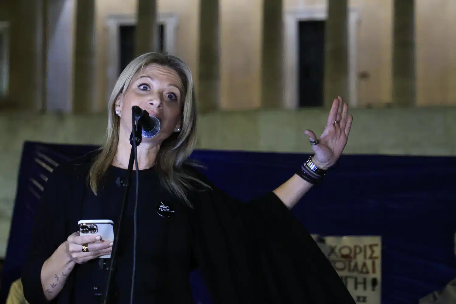 Η Καρυστιανού τόνισε πως «η ρίζα του κακού είναι σαφής: οι πολιτικοί υπεύθυνοι παραμένουν ΠΑΝΤΑ εκτός κάδρου, ΑΤΙΜΩΡΗΤΟΙ», καλώντας σε ενότητα και δράση ενόψει της συζήτησης στο Ευρωκοινοβούλιο για το Άρθρο 86 και την ατιμωρησία των πολιτικών.