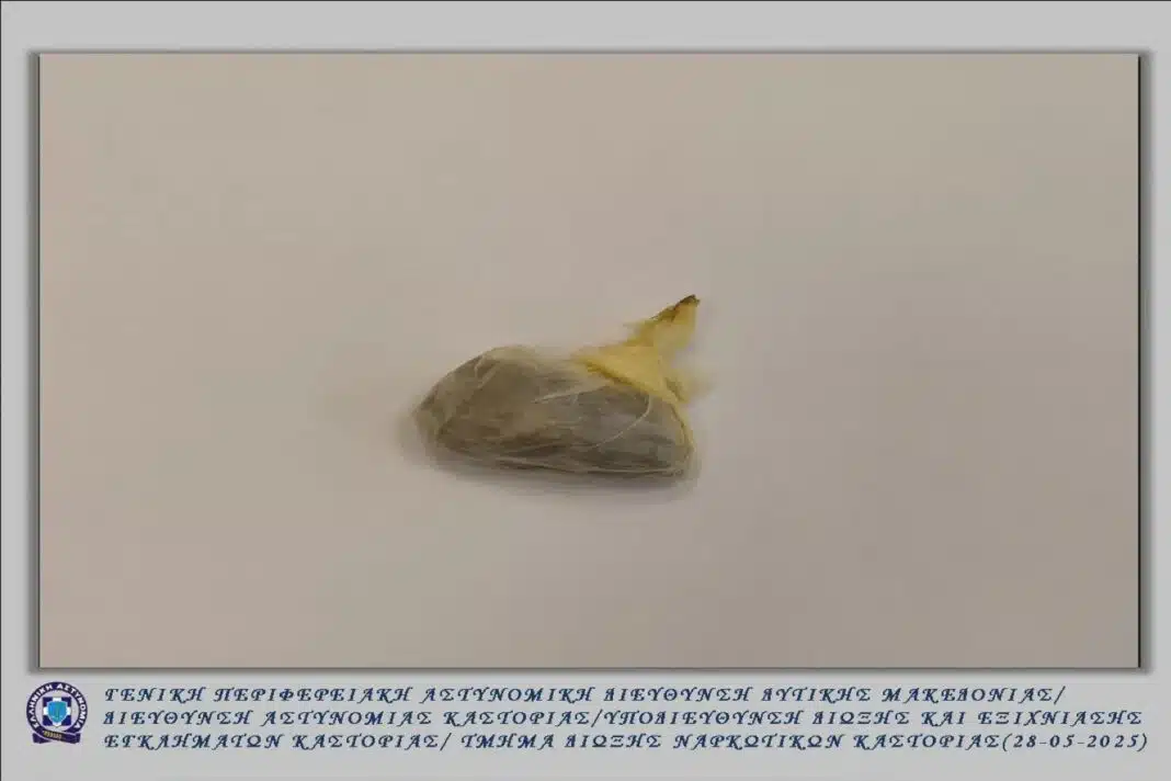 Συνελήφθη χθες (27/5) τις μεσημβρινές ώρες σε περιοχή της Καστοριάς, από αστυνομικούς του Τμήματος Δίωξης Ναρκωτικών της Υποδιεύθυνσης Δίωξης και Εξιχνίασης Εγκλημάτων Καστοριάς, 53χρονος ημεδαπός, για κατοχή ηρωίνης.