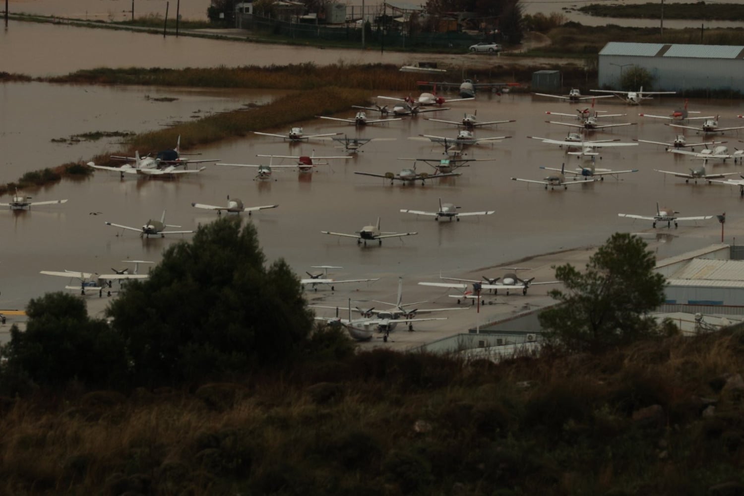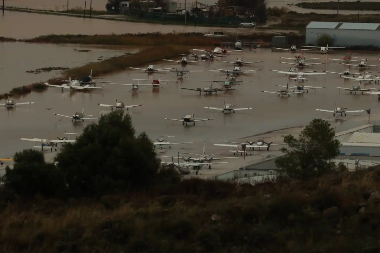 Πλημμύρες σημειώθηκαν ακόμα και στο αεροδρόμιο Πάχης Μεγάρων, όπου οι φωτογραφίες από ψηλά, του Βασίλη Μπαρμπίνη, δείχνουν το μέγεθος της καταστροφής.