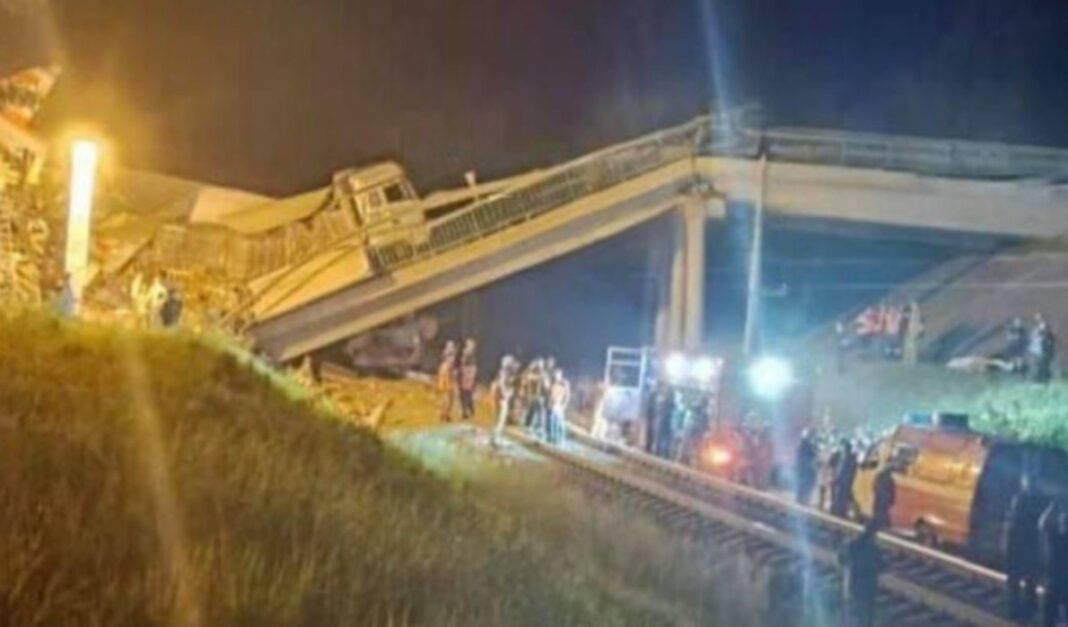 A bridge collapsed onto a moving passenger train traveling from Klimovo to Moscow near the village of Vygonichi in Russia’s Bryansk region. At the time of the incident, several heavy trucks were crossing the bridge; they plunged onto the train below, causing extensive damage.… pic.twitter.com/0bSVIbtDRn