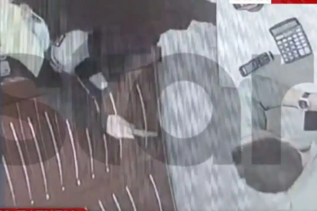Βιντεοληπτικό υλικό από κάμερα ασφαλείας, που εξασφάλισε ο τηλεοπτικός σταθμός STAR, τον δείχνει να κραδαίνει το μαχαίρι και να αιφνιδιάζει τον ιδιοκτήτη, ο οποίος πάγωσε στη θέα του όπλου.