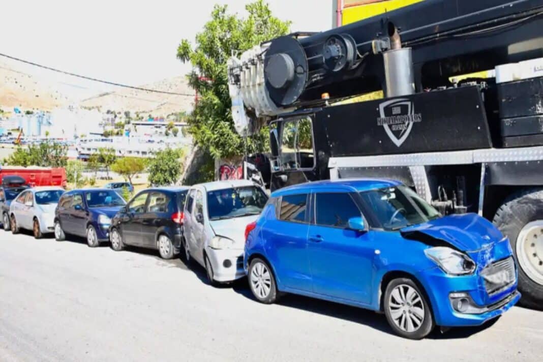Κερατσίνι: Γερανός προσέκρουσε σε παρκαρισμένα αυτοκίνητα, προκαλώντας σοβαρές ζημιές – «Aπό τύχη δεν θρηνήσαμε θύματα» (εικόνες)