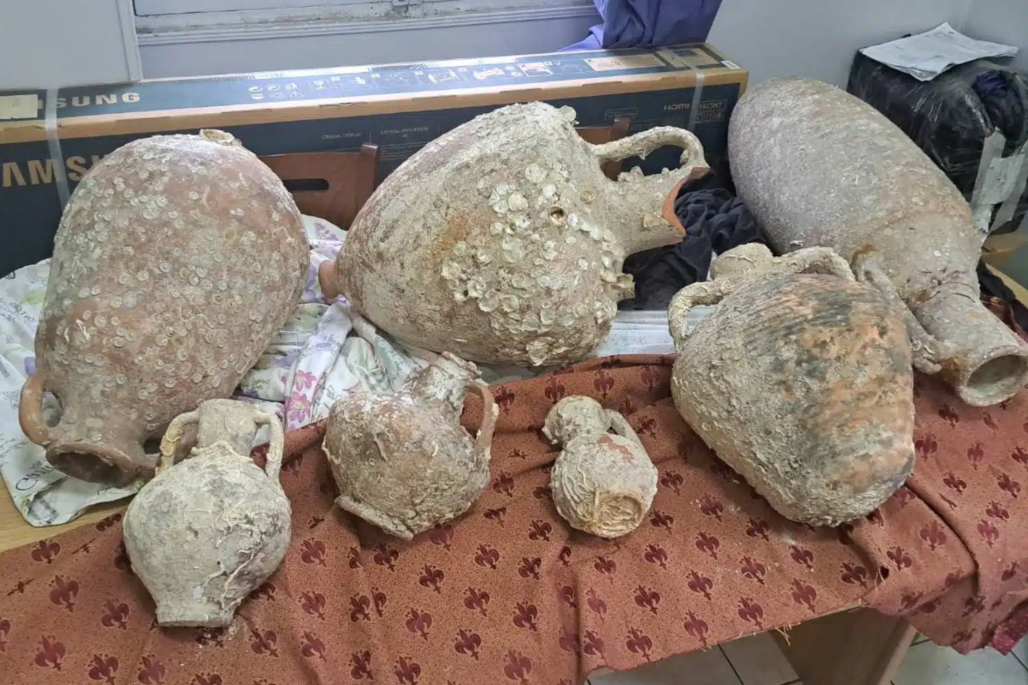 Τα κατασχεθέντα αντικείμενα τα οποία πιθανόν να υπάγονται στις προστατευτικές διατάξεις του Ν. 4858/2021 «Κώδικας νομοθεσίας για την προστασία των αρχαιοτήτων και εν γένει της πολιτιστικής κληρονομιάς», έφεραν εμφανή ίχνη από μακροχρόνια παραμονή στο βυθό. Από το Κεντρικό Λιμεναρχείο Πειραιά που διενεργεί την προανάκριση, ενημερώθηκε η αρμόδια Εφορεία Εναλιών Αρχαιοτήτων, για τις δικές της περαιτέρω ενέργειες.