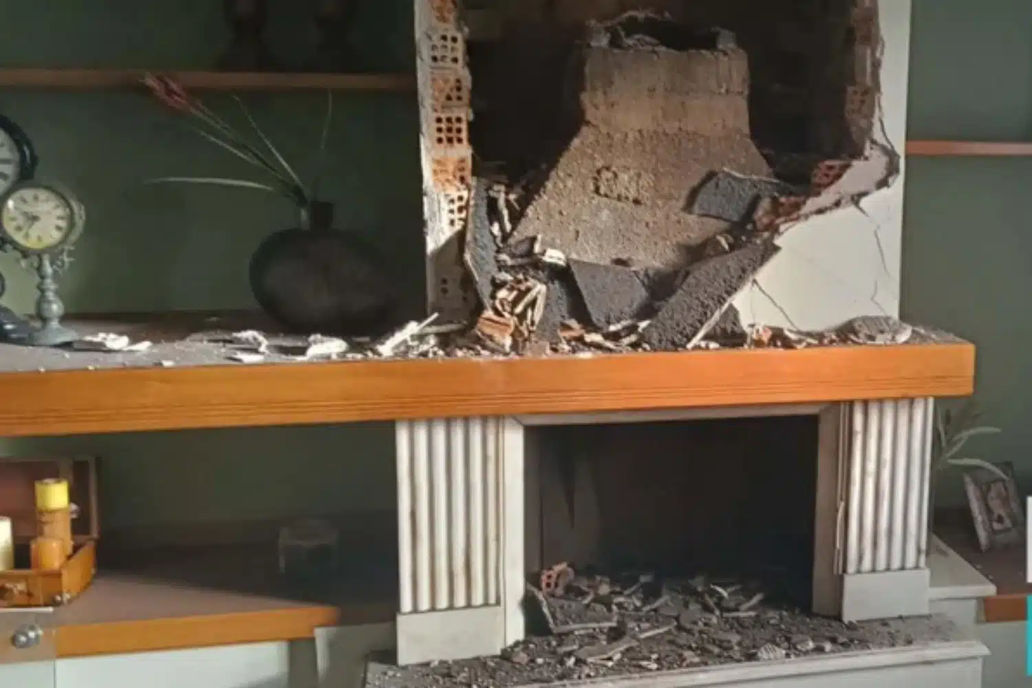 Από την σφοδρότητα του χτυπήματος, προκλήθηκαν ζημιές και στο εσωτερικό του σπιτιού. Συγκεκριμένα έσπασε ο τοίχος πάνω από το τζάκι ενώ ο κεραυνός προκάλεσε και διακοπή ρεύματος.