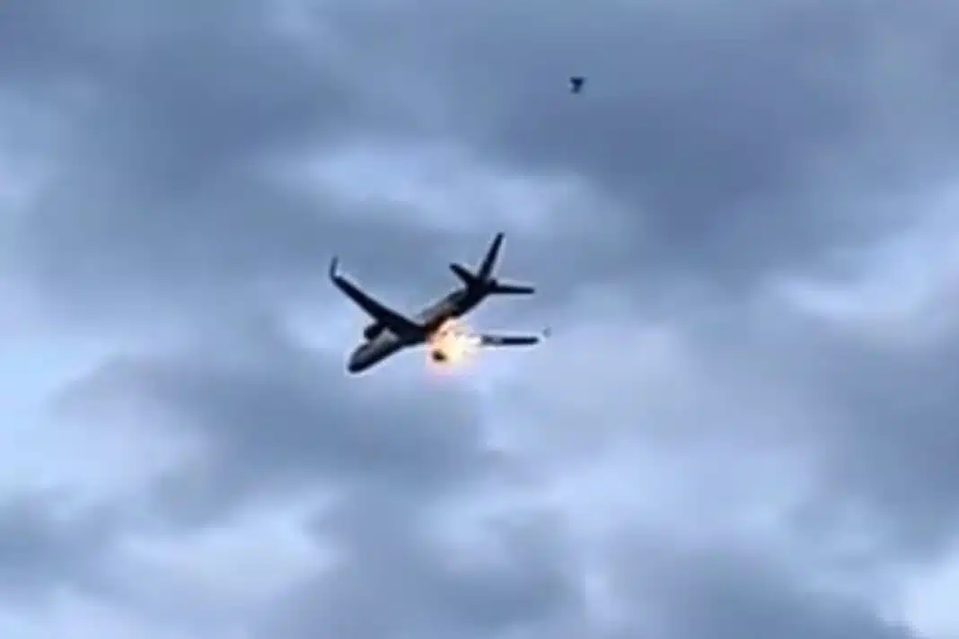 Βίντεο που κατέγραψαν επιβάτες μέσα στην καμπίνα δείχνουν τις εκρήξεις και τη φωτιά στον κινητήρα, με το αεροσκάφος να τραντάζεται.