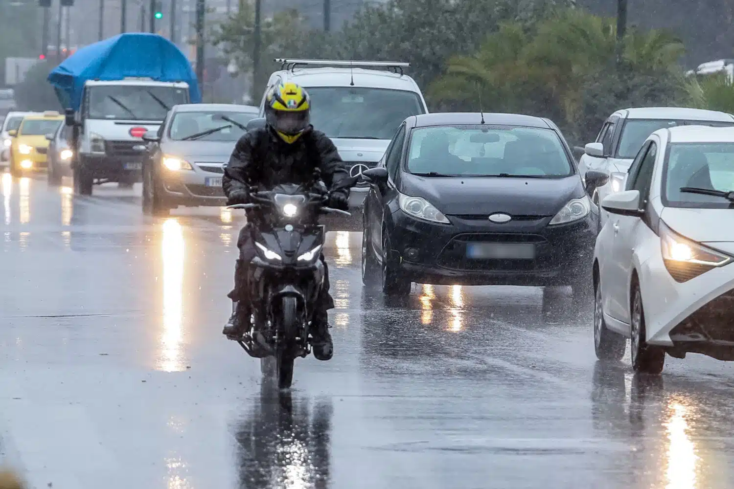 Εντωμεταξύ, στο κόκκινο είναι η κίνηση στους περισσότερους κεντρικούς δρόμους της Αθήνας, το μεσημέρι της Τετάρτης λόγω και της έντονης βροχόπτωσης που σημειώνεται.