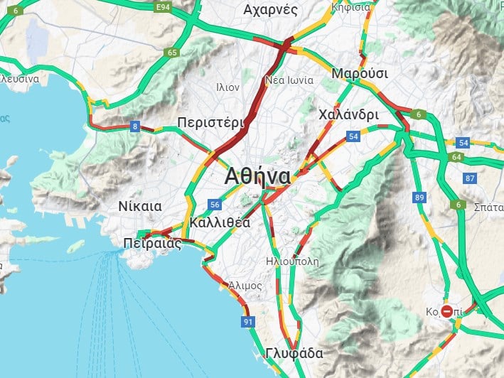 Επίσης, καθυστερήσεις υπάρχουν σε Κηφισίας, Αττική Οδό, Ποσειδώνος και στο κέντρο της Αθήνας.
