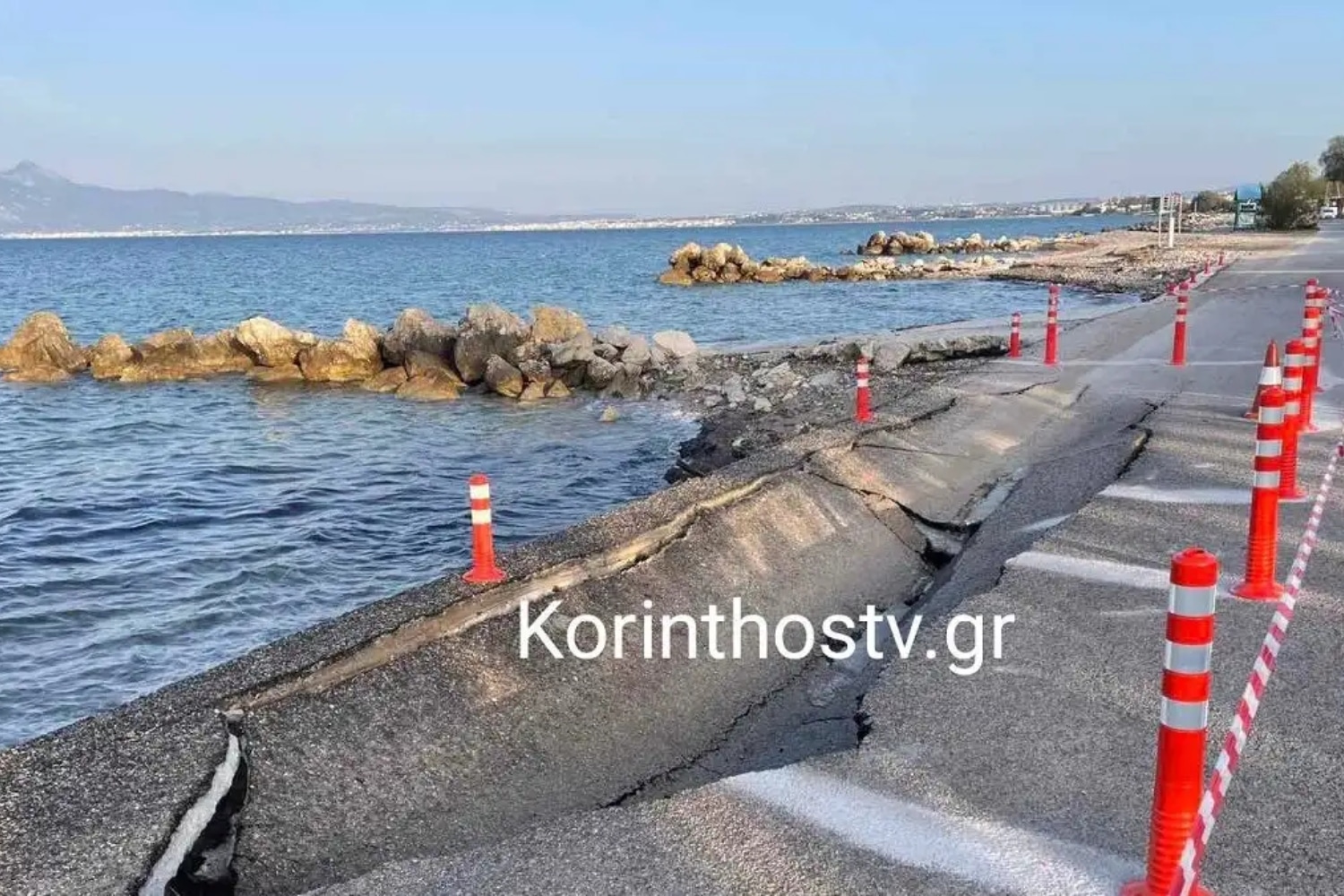 Σημαντικές ρηγματώσεις καταγράφονται σε πολλά σημεία της ακτογραμμής, με αποτέλεσμα να κηρυχθεί σε κατάσταση έκτακτης ανάγκης το σύνολο της Δημοτικής Ενότητας Άσσου – Λεχαίου, στην Κορινθία.
