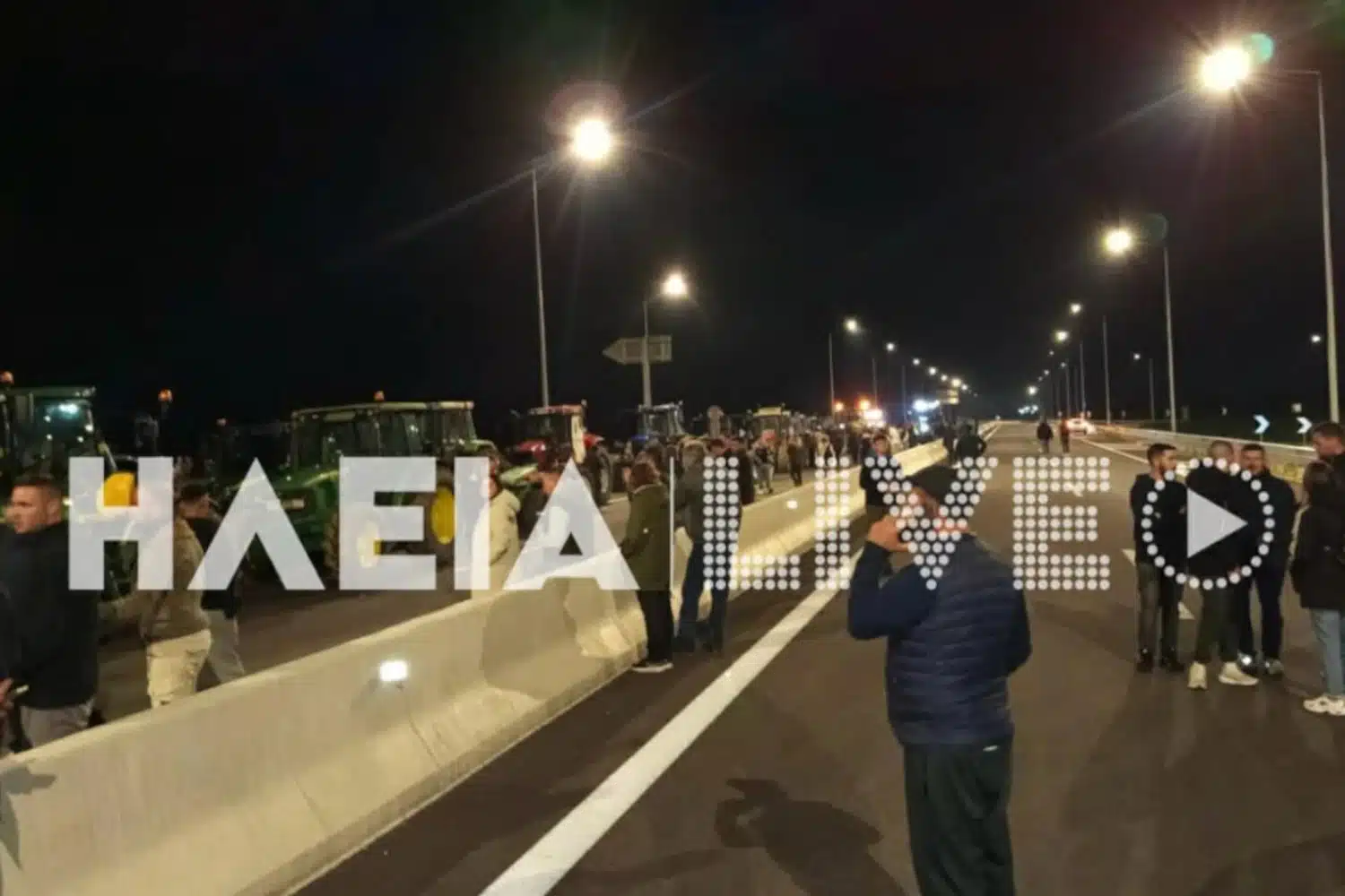 Αγρότες της Κάτω Αχαΐας προχώρησαν σε μαζικό αποκλεισμό της Ολυμπίας Οδού στην περιοχή, κλείνοντας και τα δύο ρεύματα κυκλοφορίας, με αποτέλεσμα τον πλήρη αποκλεισμό της οδού στο σημείο.