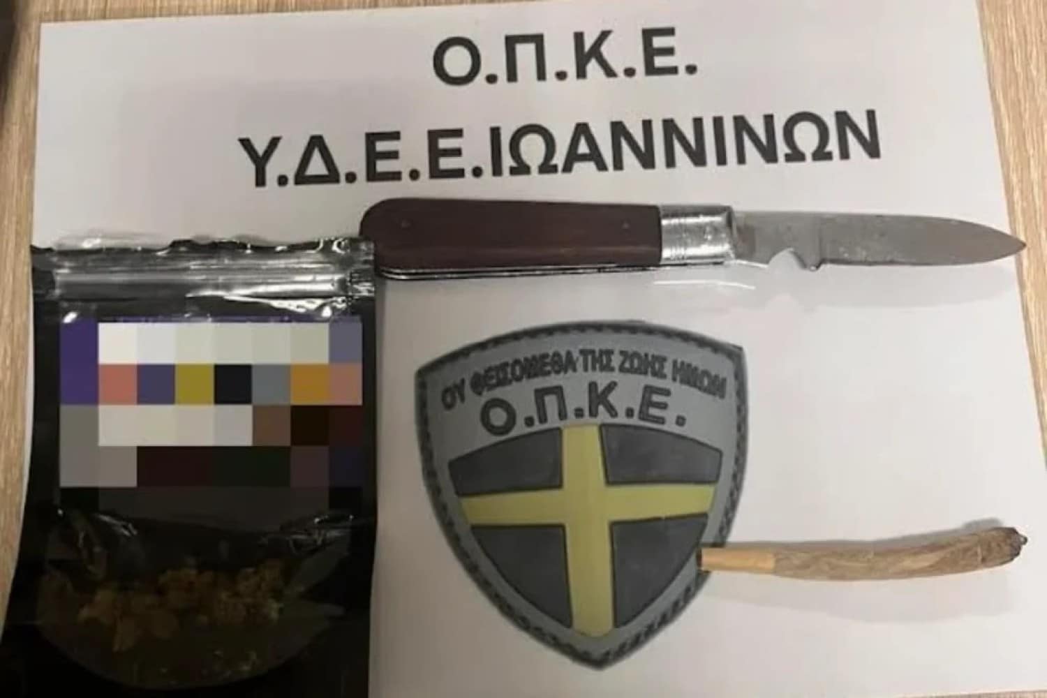 Οι αστυνομικοί της Υποδιεύθυνσης Δίωξης και Εξιχνίασης Εγκλημάτων Ιωαννίνων σταμάτησαν τον άνδρα για έλεγχο, κατά τον οποίο βρέθηκε στην κατοχή του και κατασχέθηκε ένας αναδιπλούμενος σουγιάς με συνολικό μήκος 19,5 εκατοστά.