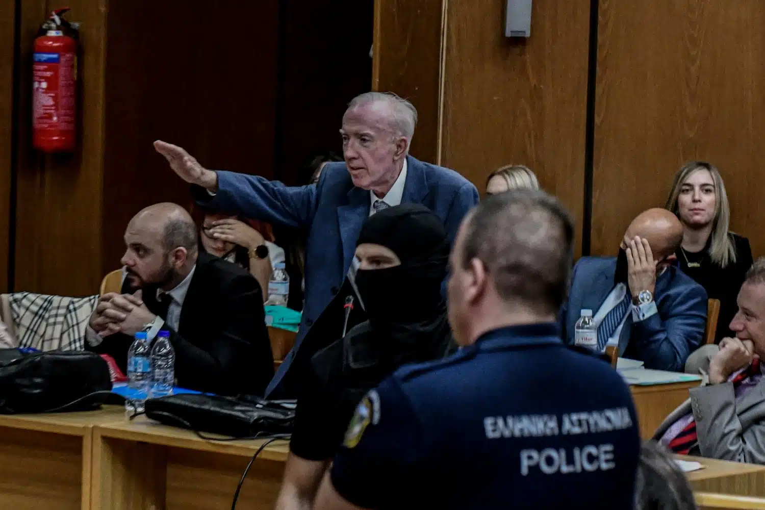 Ο Κωνσταντίνος Πλεύρης, ο οποίος έχει διαγραφεί από τον Δικηγορικό Σύλλογο της Αθήνας για τον κατ’ επανάληψη ναζιστικό χαιρετισμό του στην αίθουσα της δίκης της Χρυσής Αυγής, ισχυρίστηκε ότι ο συνήγορός του απουσίαζε διότι, όπως είπε, «φοβόταν τους αναρχικούς».