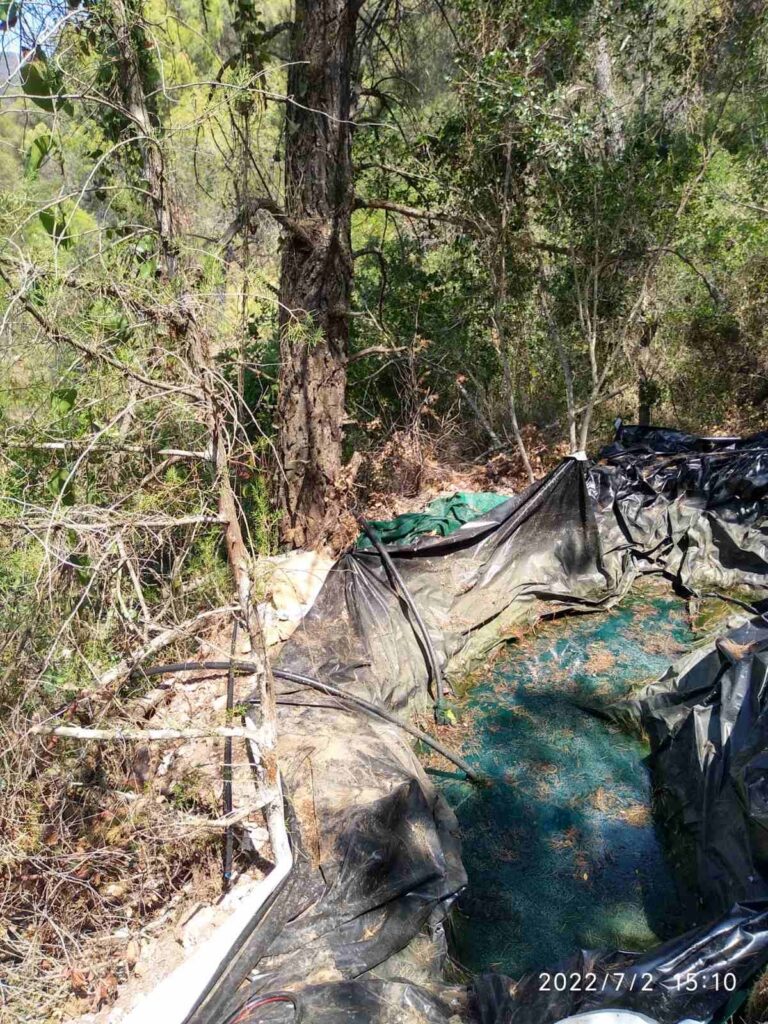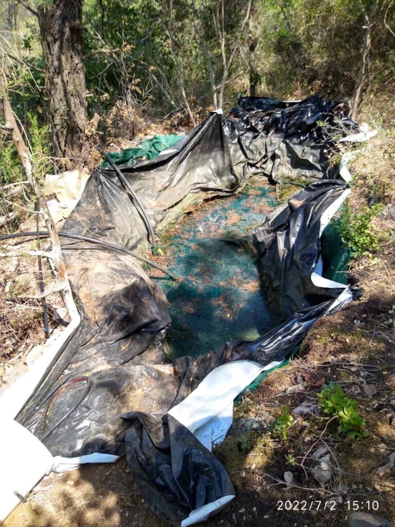 - δύο αυτοσχέδιους χώρους συλλογής υδάτων, με νάιλον και κορμούς δένδρων
