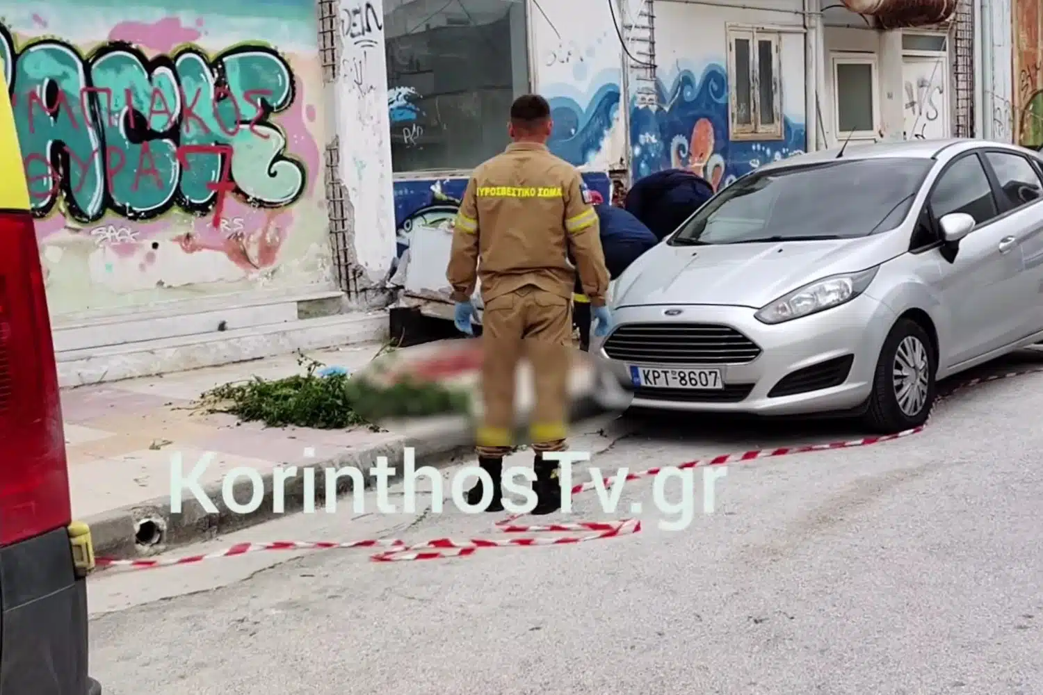 Σύμφωνα με πληροφορίες του korinthostv.gr, η γυναίκα περνούσε από το σημείο ακριβώς εκείνη τη στιγμή με το παιδί της, δεν πρόλαβε να αντιδράσει και εγκλωβίστηκε κάτω από τον όγκο των δομικών υλικών και του τσιμέντου.