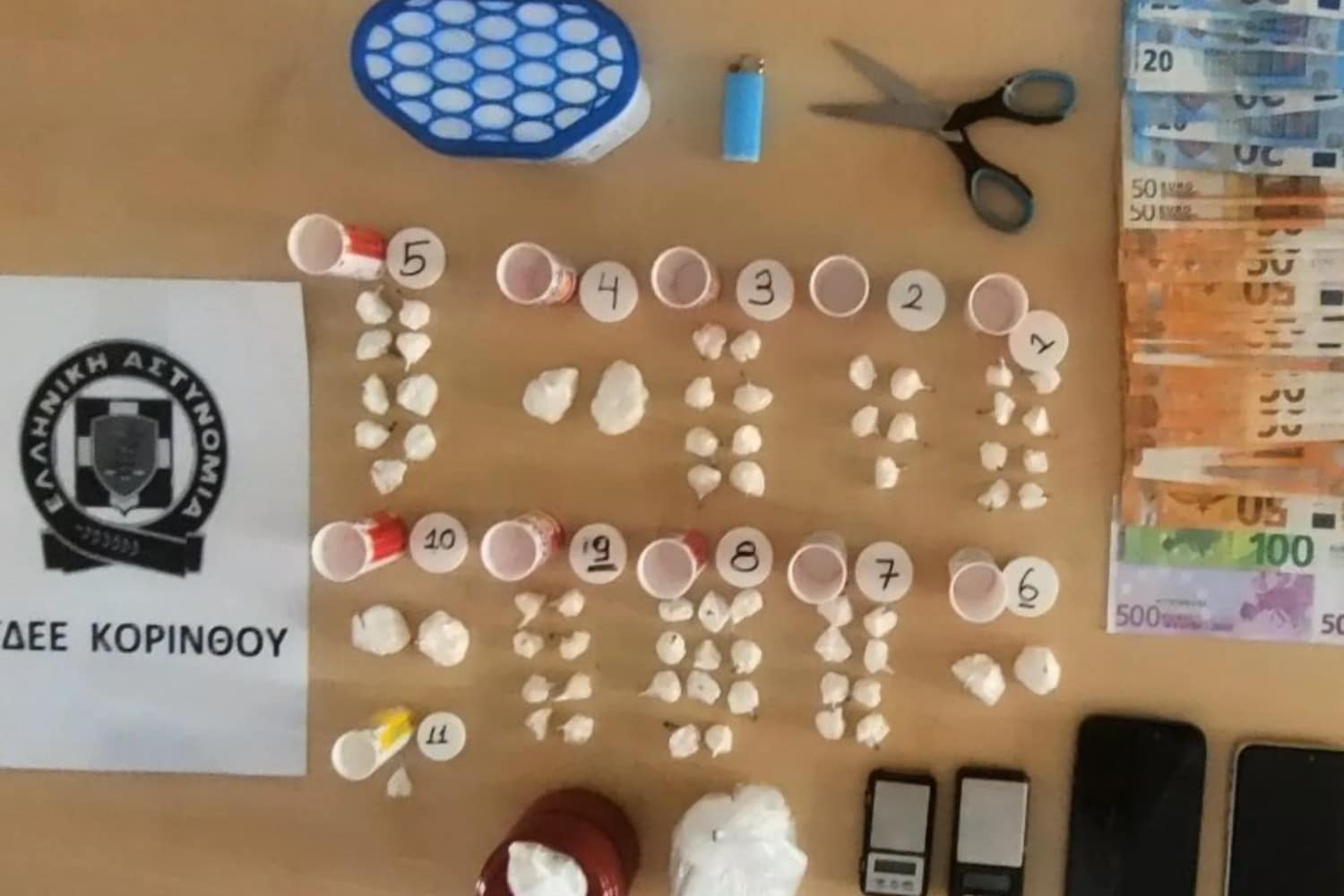 Σε έρευνα που πραγματοποιήθηκε από τους ανωτέρω αστυνομικούς, με τη συνδρομή της E2 Ομάδας Πρόληψης και Διαμεσολάβησης (Ο.Π.ΔΙ) Κορινθίας την 27.4.2026, στο πλαίσιο οργανωμένης αστυνομικής επιχείρησης, σε οικία τους καθώς και στην κατοχή τους βρέθηκαν, συνολικά και κατασχέθηκαν: