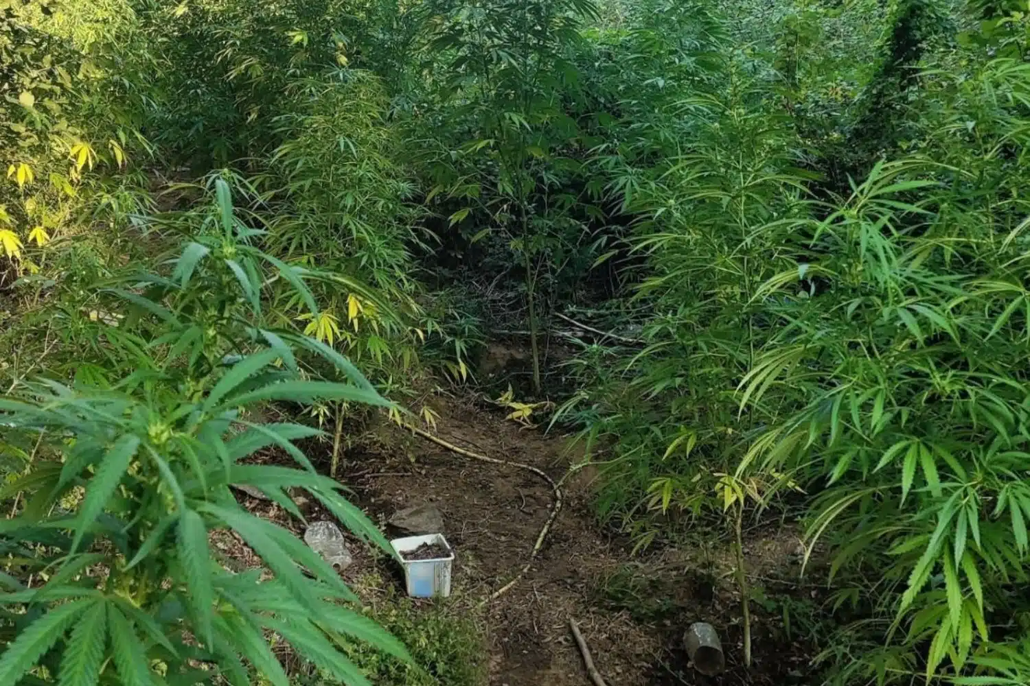 Εκεί εντοπίσθηκε, σε ειδικά διαμορφωμένο χώρο, μία φυτεία όπου καλλιεργούνταν επιμελώς 227 δενδρύλλια κάνναβης στο στάδιο της συγκομιδής ύψους έως 2 μέτρα και αφού εκριζώθηκαν κατασχέθηκαν.