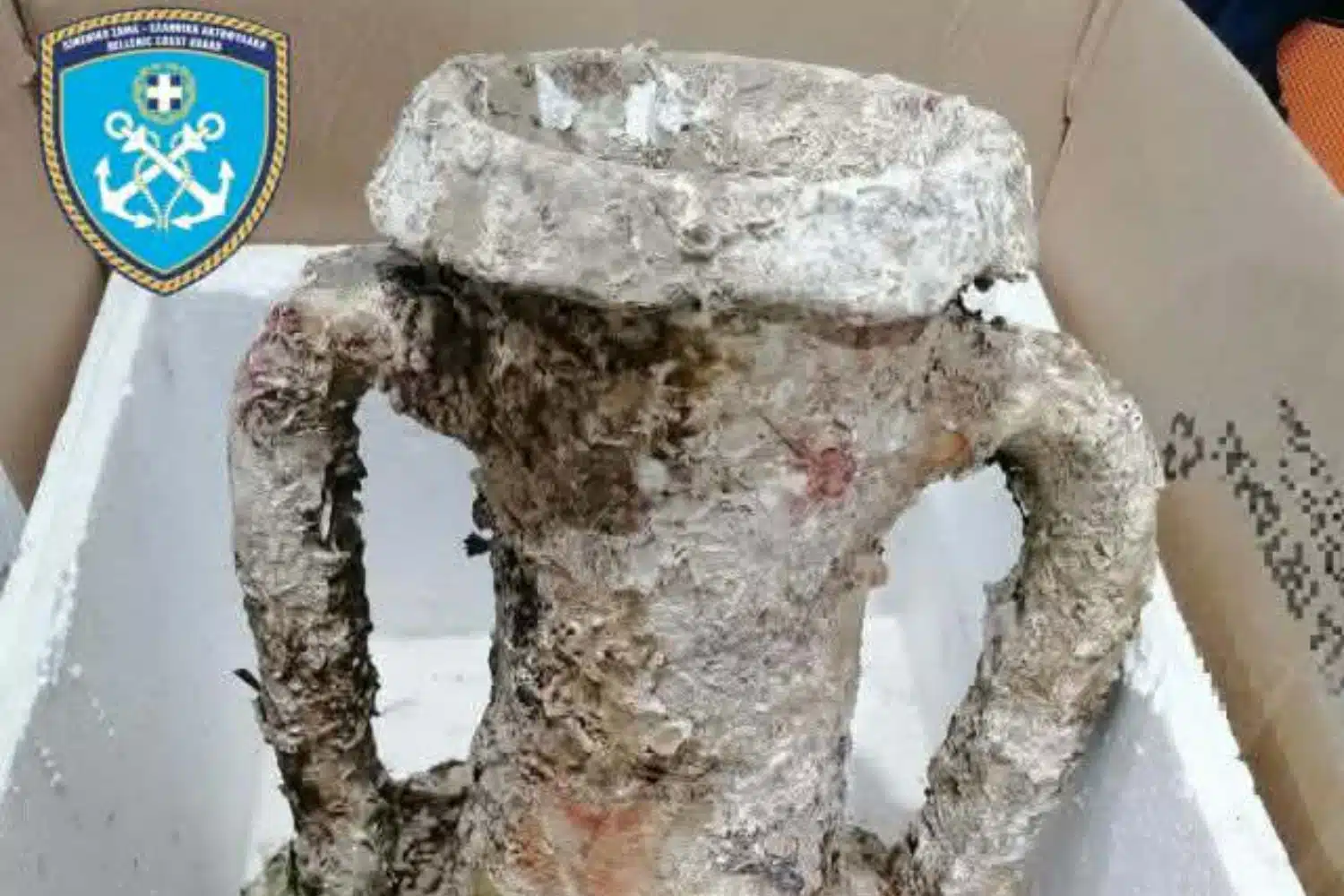 Το αντικείμενο, διαστάσεων περίπου 40 εκατοστών σε ύψος και 30 εκατοστών σε μήκος, ανασύρθηκε με τα δίχτυα κατά τη διάρκεια αλιείας. Ο κυβερνήτης του σκάφους το παρέδωσε άμεσα στις λιμενικές αρχές, προκειμένου να εξεταστεί από τις αρμόδιες υπηρεσίες.
