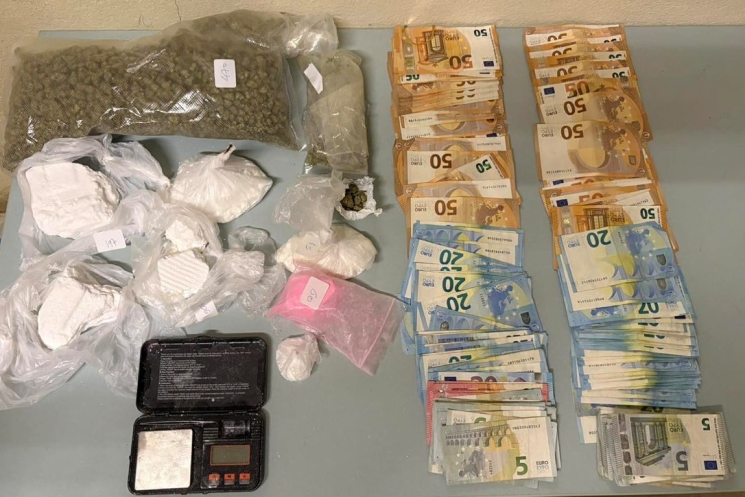 Κατασχέθηκαν, μεταξύ άλλων, 650 γραμμάρια κοκαΐνης, 523,9 γραμμάρια κάνναβης και το χρηματικό ποσό των 4.710 ευρώ.