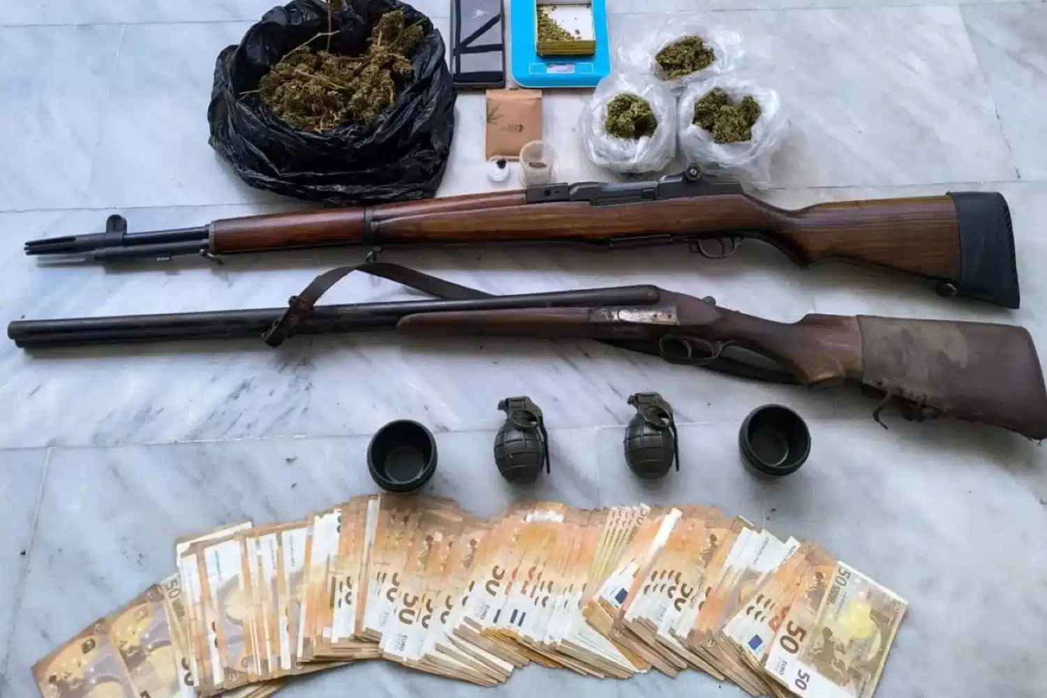 Κατασχέθηκαν, μεταξύ άλλων, πάνω από 100 δενδρύλλια κάνναβης, πολεμικό τυφέκιο και χειροβομβίδες.