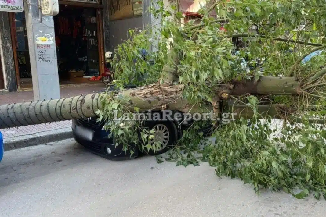 Το δέντρο έπεσε στην οδό Σατωβριάνδρου κατά τις 12 το μεσημέρι, σύμφωνα με το lamiareport.gr.