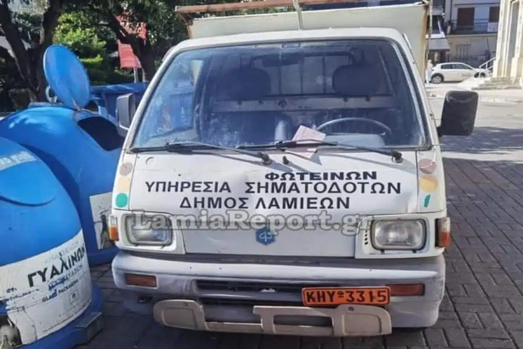 Κατόπιν επώνυμης καταγγελίας πολίτη, συνεργείο της Τροχαίας Λαμίας, έφτασε στην πλατεία και αφού έγραψε όσα δίκυκλα ήταν παραταγμένα στο πεζοδρόμιο, στη συνέχεια έγραψε και τα δύο φορτηγάκια (4Χ4 και σκαφάκι) του Δήμου Λαμιέων.