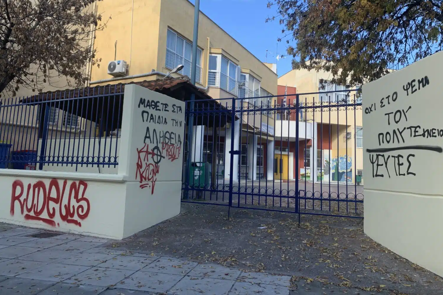 Ντροπή προκαλούν οι πράξεις στις οποίες προχώρησαν άγνωστοι που βανδάλισαν την είσοδο σχολείου στη Λάρισα.