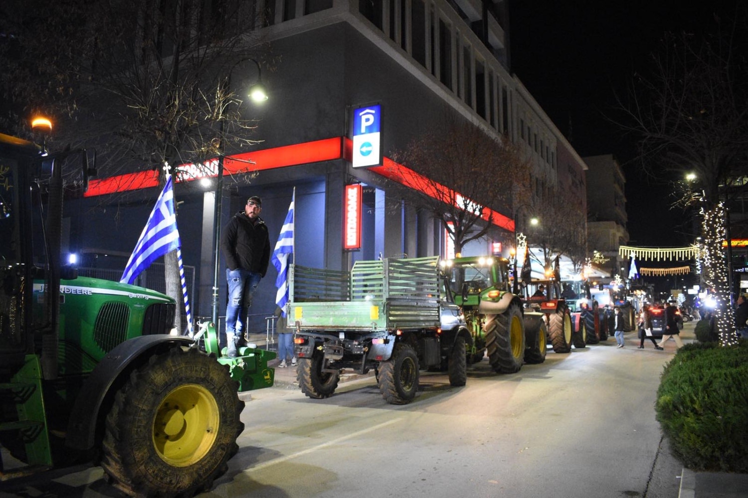 Σε νέα κινητοποίηση προχώρησαν απόψε Δευτέρα οι αγρότες του μπλόκου της Νίκαιας, συνεχίζοντας τον αγώνα τους με πορεία τρακτέρ στο κέντρο της Λάρισας.