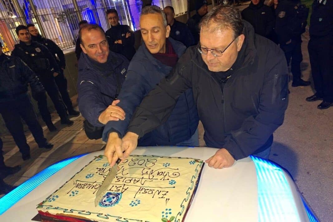Για άλλη μια χρονιά, η Ένωση Αστυνομικών Λάρισας τήρησε το έθιμο και έκοψε την πρωτοχρονιάτικη πίτα πάνω στο περιπολικό.