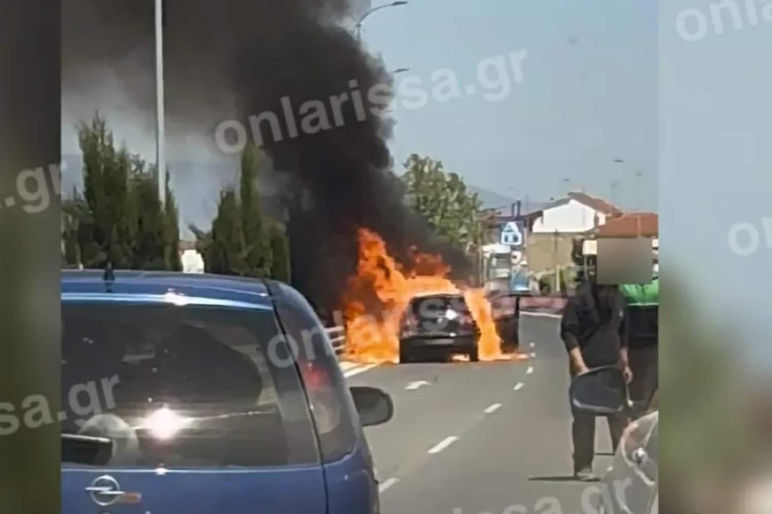 Σύμφωνα με πληροφορίες και βίντεο που κατέγραψε το τοπικό μέσο onlarissa.gr, αυτοκίνητο που κινούνταν στο σημείο τυλίχθηκε ξαφνικά στις φλόγες, κοντά στην εκκλησία του Αγίου Γεωργίου, στο ρεύμα προς το Αρχηγείο Τακτικής Αεροπορίας.
