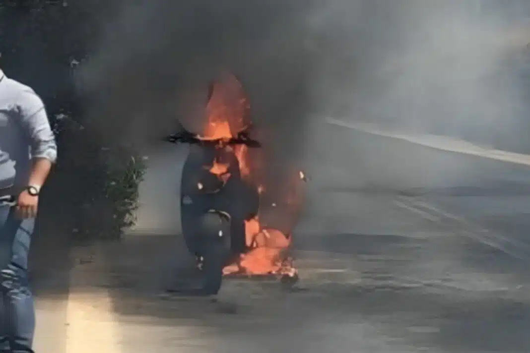 Το μηχανάκι άρπαξε φωτιά κάτω από αδιευκρίνιστες ως στιγμής συνθήκες. Ο δικυκλιστής με ψυχραιμία στάθμευσε και ειδοποίησε τις Αρχές.