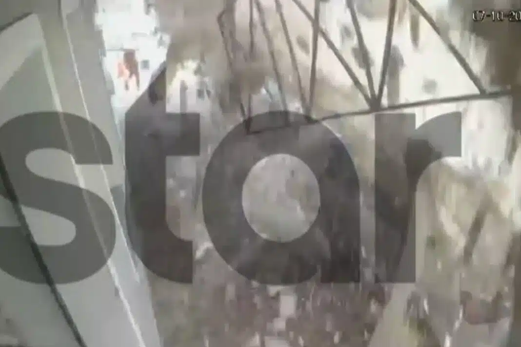 Στο νέο βίντεο που ήρθε στο φως από το Star, ακούγεται ένας εκκωφαντικός ήχος και μια γυναίκα που βρίσκεται από κάτω από το μπαλκόνι, τρέχει και γλιτώνει τελευταία στιγμή, λίγα δευτερόλεπτα πριν πέσουν τα συντρίμμια πάνω στον δρόμο και σε οχήματα, τα οποία υπέστησαν ζημιές.