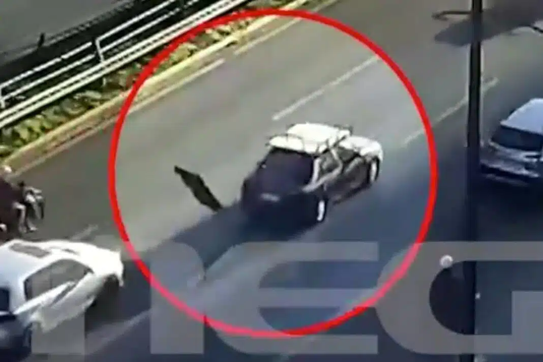 Όπως φαίνεται σε βίντεο, η τηλεόραση «πετάει» από το αυτοκίνητο στο οδόστρωμα, την ώρα που το ΙΧ βρίσκεται στη μεσαία λωρίδα.