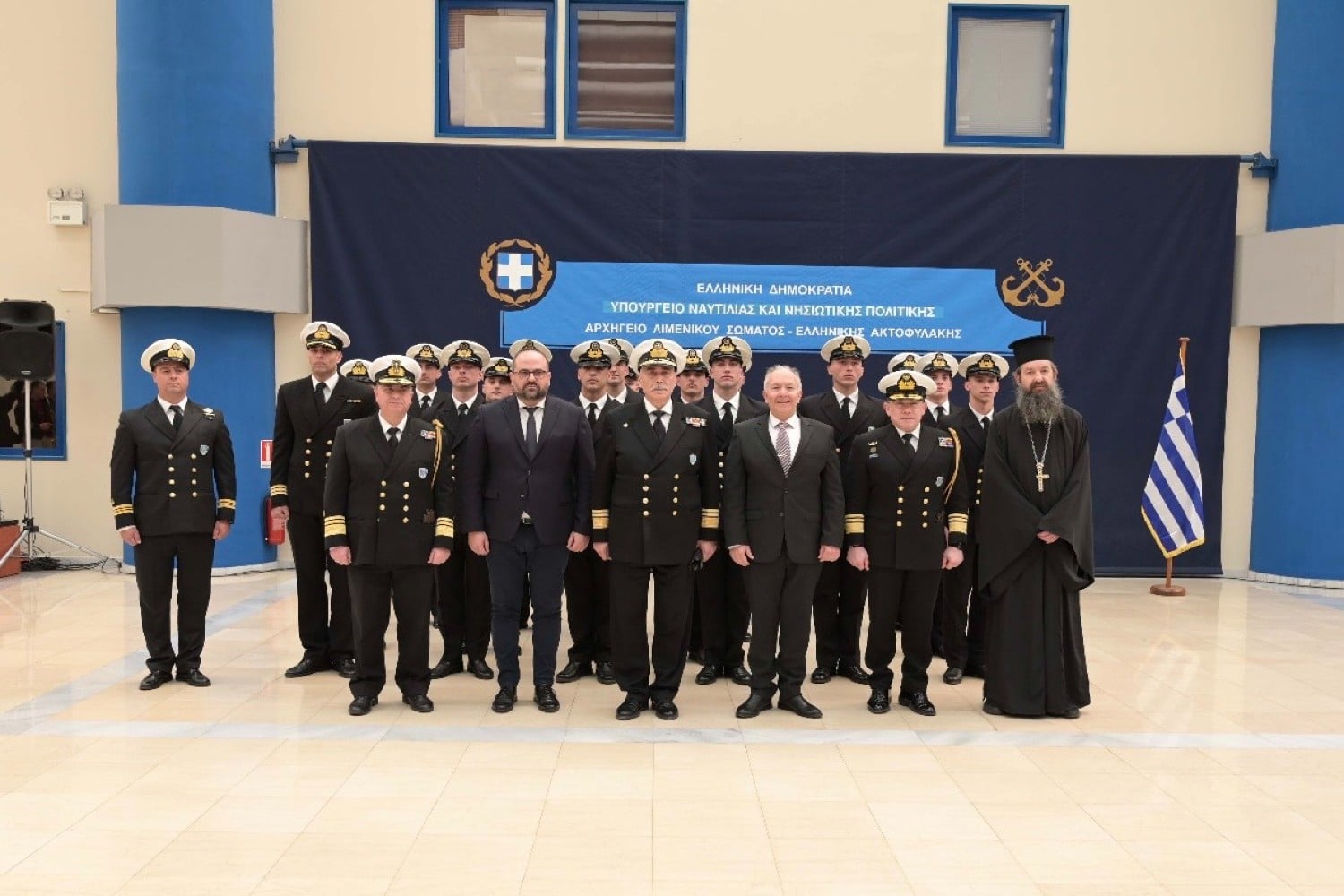 Στην τελετή που πραγματοποιήθηκε στο αίθριο του Υπουργείου Ναυτιλίας και Νησιωτικής Πολιτικής, χοροστάτησε ο Πρωτοπρεσβύτερος Πατέρας Δημήτριος Βαρσαμίδης – Πλωτάρχης Λ.Σ. (Ι), ενώ παρέστησαν επίσης ο Γενικός Γραμματέας Αιγαίου και Νησιωτικής Πολιτικής κ. Μανώλης Κουτουλάκης, ο Α’ Υπαρχηγός Λιμενικού Σώματος – Ελληνικής Ακτοφυλακής Αντιναύαρχος Λ.Σ. Δρόσος Ρεΐζης, ο Β’ Υπαρχηγός Λιμενικού Σώματος – Ελληνικής Ακτοφυλακής Αντιναύαρχος Λ.Σ. Τρύφων Κοντίζας καθώς και λοιποί Ανώτατοι και Ανώτεροι Αξιωματικοί του Λιμενικού Σώματος – Ελληνικής Ακτοφυλακής.